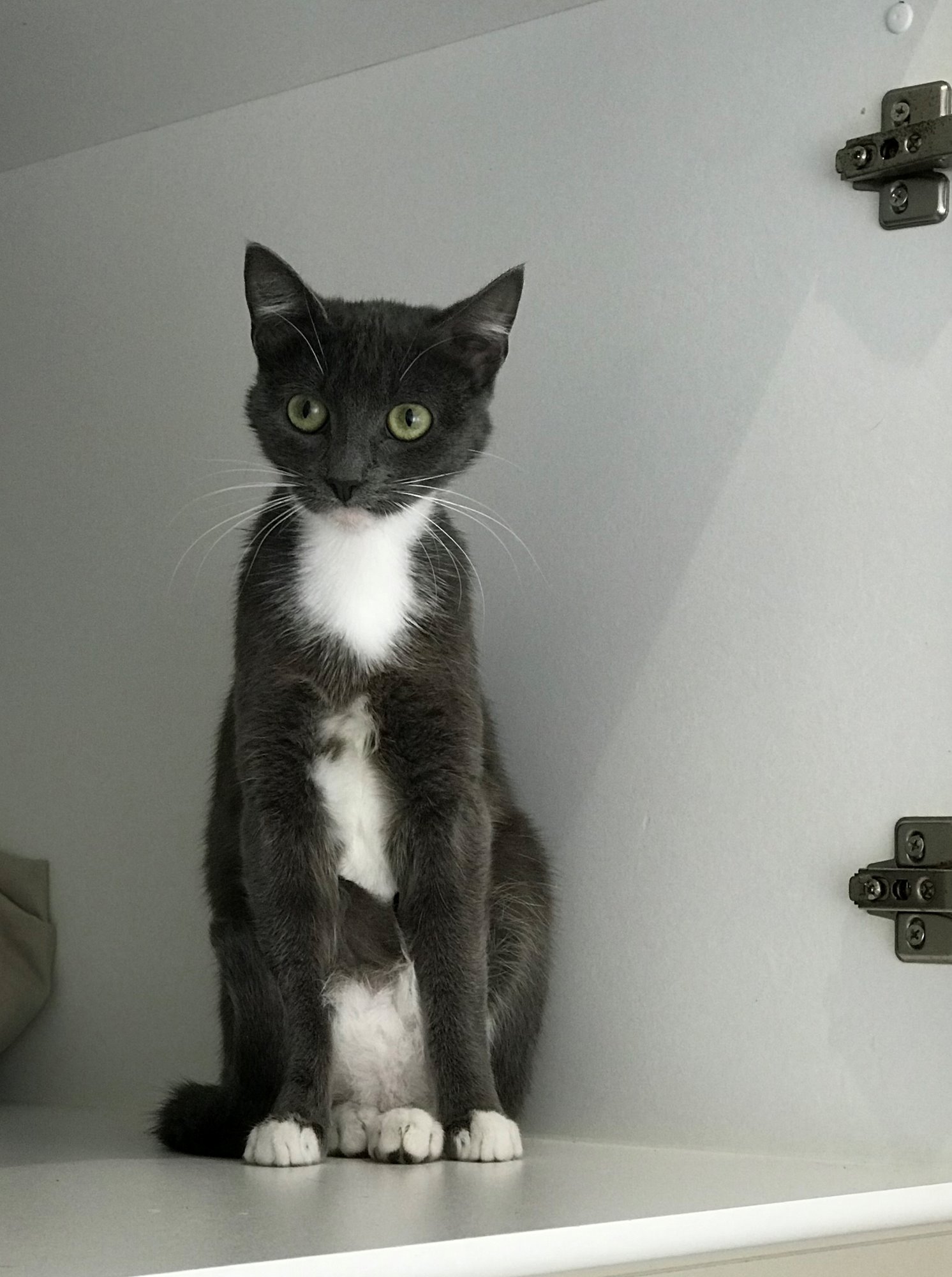 Sweet Sage is a young adult searching for her forever home. She is a small, quiet and clean cat who can be a little shy when meeting for the first time but really comes out of her shell with pats and toys. Sage would be happy to share her home with another 4 legged friend or a 2 legged friend that could respect her space. Once settled in a home, Sage will begin to shine.