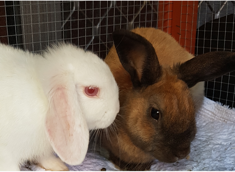 Aspen is a beautiful little ruby eyed white lop bunny. He's a quiet and inquisitive boy who bonded almost instantly with Hunter, a playful little guy who loves his food. The two are now inseparable, and their snuggles will warm your heart!