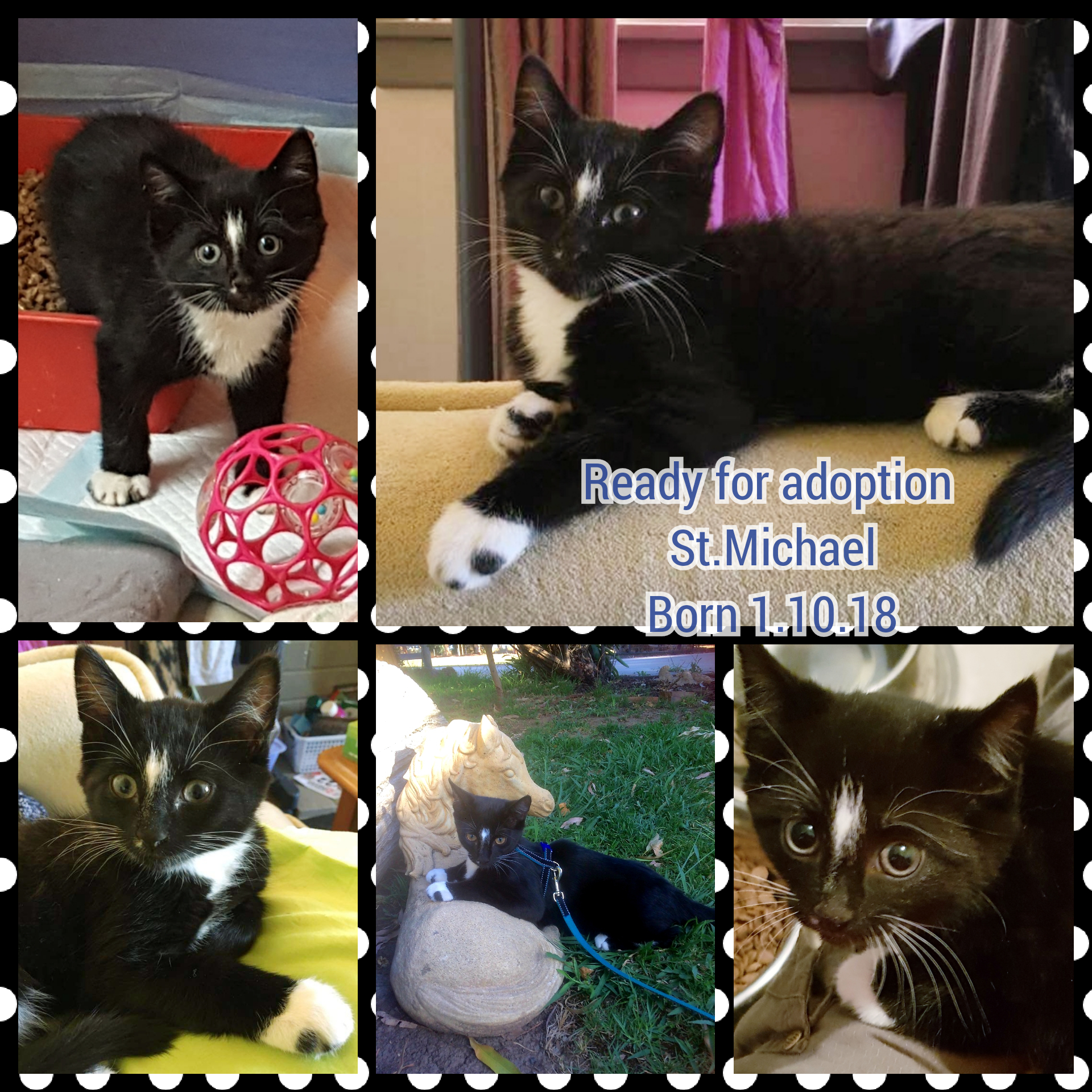 This little fighter, with his white star on his chest, was named after St Michael the patron Saint of Doctors,Soldiers and Police because he was found under a local priory at approximately 6weeks of age.