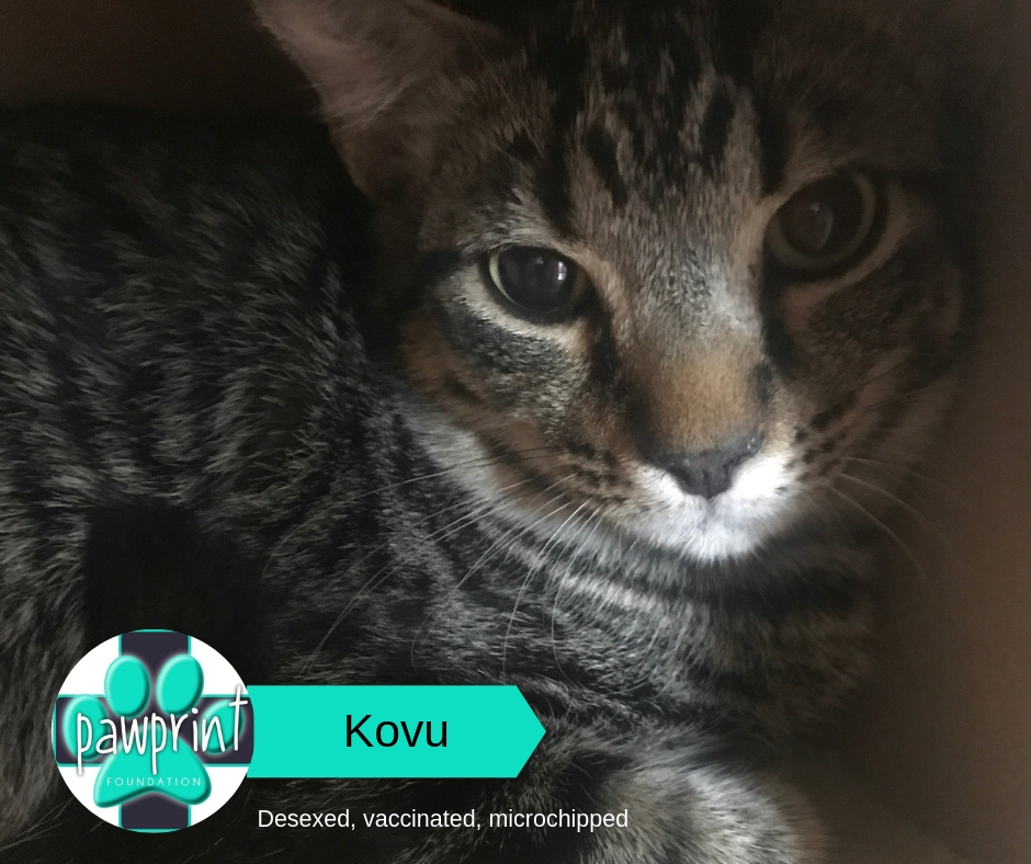 Kovu has the most beautiful tabby markings. He absolutely loves chicken, he is obsessed!! He is a kitty that enjoys the company of other kitties and loves pats, as long as you are quite and slow. He is not great with loud noises, or the vacuum.This little man is very shy. He hasn’t had too much human contact so his new family will need to be patient and give him time to warm up in his new environment.