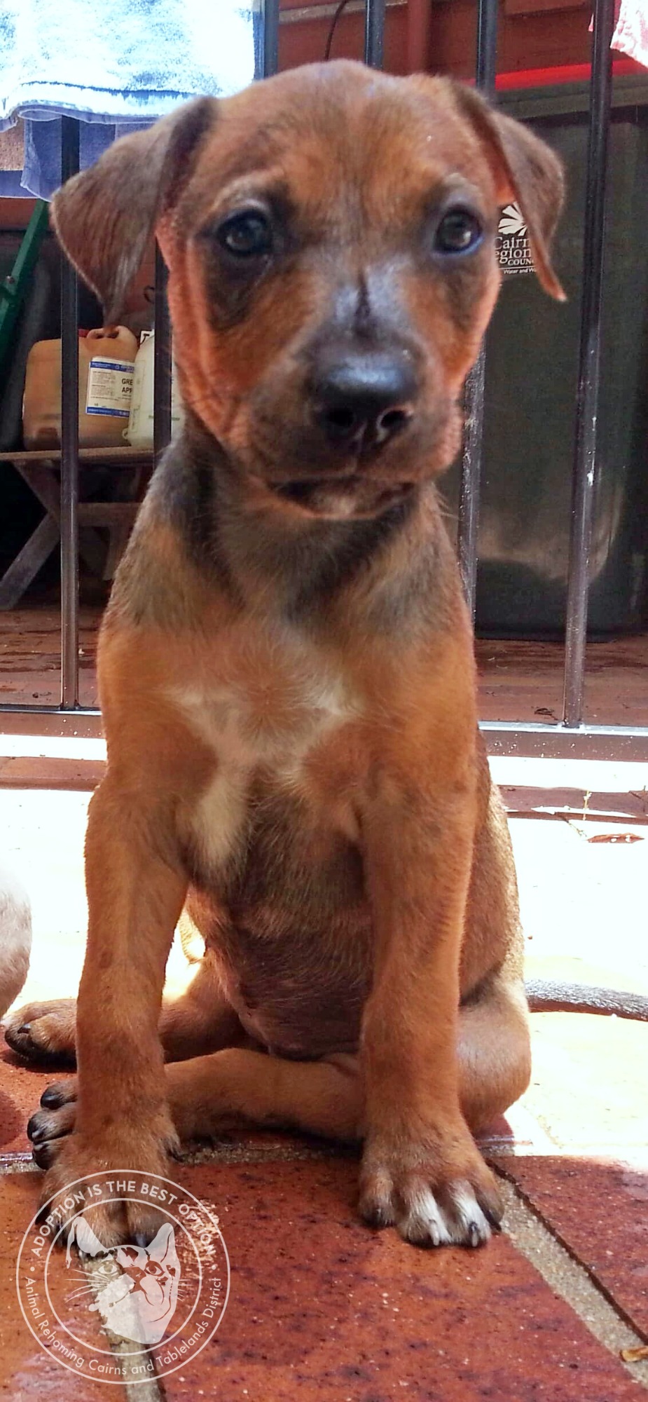 Happy was born 24.12.18 and rescued when just a few weeks old. She has unknown parentage so will be registered as simply a mixed medium breed. But her name says it all. Yes she's a happy little girl. She loves to run, explore and play with anything she can find or, her siblings if they're up for a game. But she also really loves cuddles with her sibling or to get picked up in her foster mum's arm's and will let you know when that's what she needs. All her vetwork will be done before she goes to her new home which includes desexing, microchip, vaccination, worm and flea treatment, but we are taking expressions of interest with possible pre-adoption orders taken. She is in foster care in Cairns so, If you're interested in adopting this beautiful puppy please email arcatd@hotmail.com.