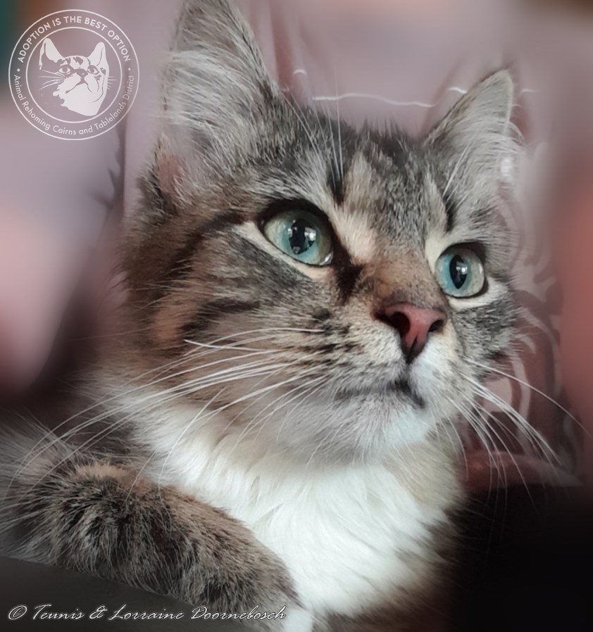 Trinity was born 19.12.17 approx. She is a very pretty girl with the most captivating green eyes and long silky coat. Trinity was a pound cat who was never claimed and what a sad loss for her previous owners because she is one of the most delightful kitties we've ever had. Someone is going to be very blessed to have her for company as she loves nothing more than to be loved, petted and be with you. Give her your lap and she's yours forever. All her vet work has been done and includes desexing, microchip, vaccination, flea and worm treatment and she has been tested FIV negative. She is In foster care in Cairns. If you're interested in adopting this beautiful kitty, please email arcatd@hotmail.com