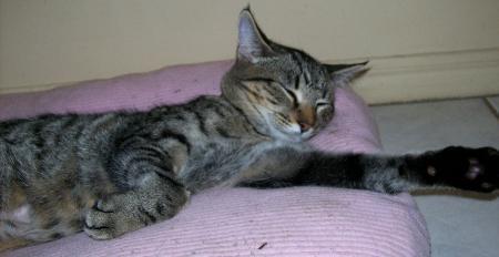This is a very friendly pretty little older kitten still full of mischeif and kitten ways. She will make a lovely lap cat and likes sleeping on the bed. Plays with children and is not afraid of dogs but prefers only two legged company but will get used to other cats given time and patience. A real miss bossy britches