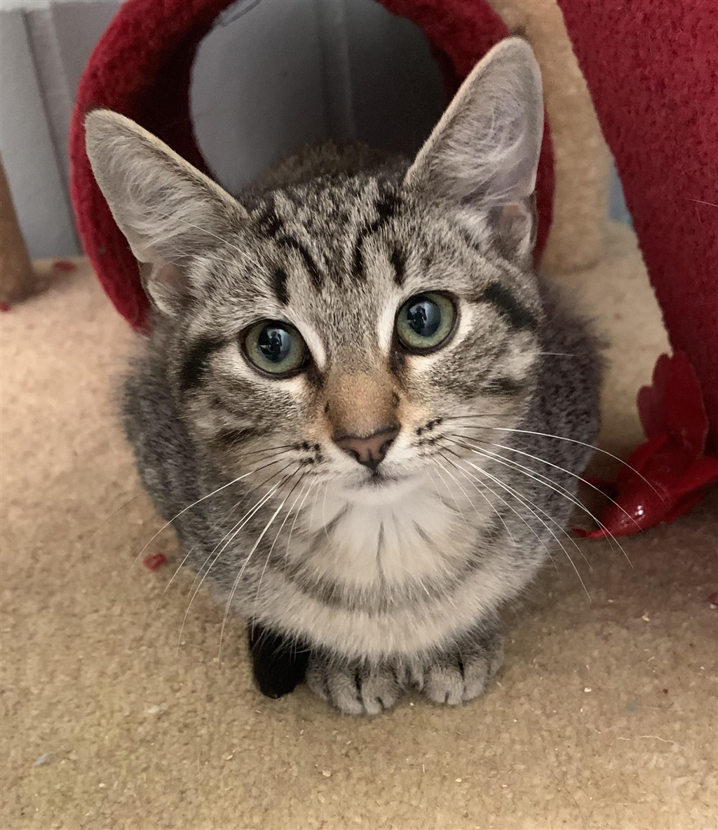 "Hello, my name is Tommy! I have grown up at the RSPCA and I am now ready to find my forever home! I came in to the shelter with my brothers as a scared little kitten, but am growing in confidence with every day. I would like to find a quiet and mature home indoors with one of my brothers or another cat to show me the ropes! I am hoping to find a home indoors where I am safe, warm and very loved! If you have spare space in your home and in your heart, then please come in and meet me. See you soon!"
