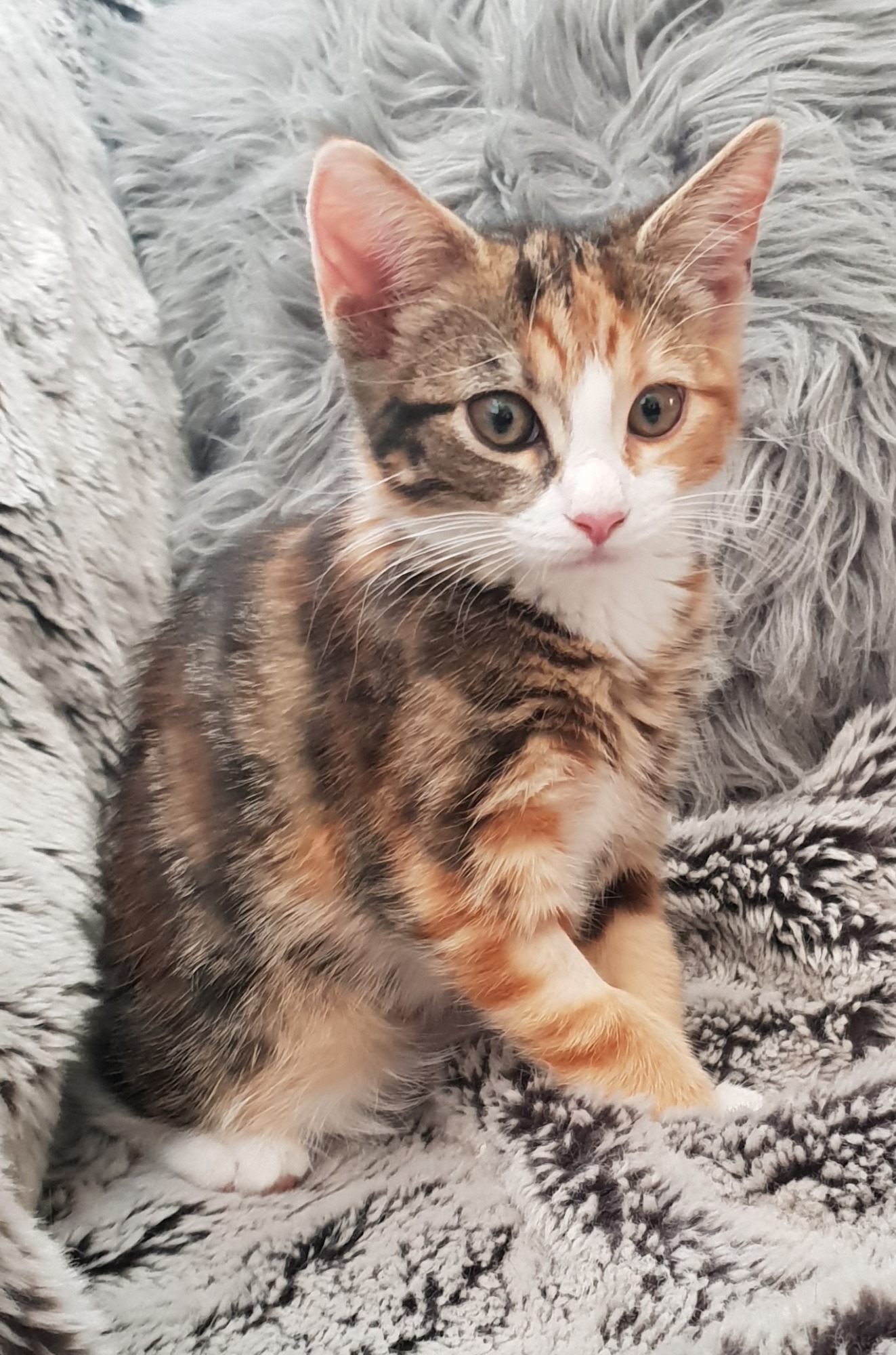 Penny had a bit of a rough start to life. Penny had been kept in a nappy box and was a timid little girl when we first met her. She is now the life of the party, such a funny little girl who loves to play until she wears herself out then jumps up onto the sofa or bed ( wherever you are) and snuggles into you with her huge purr.