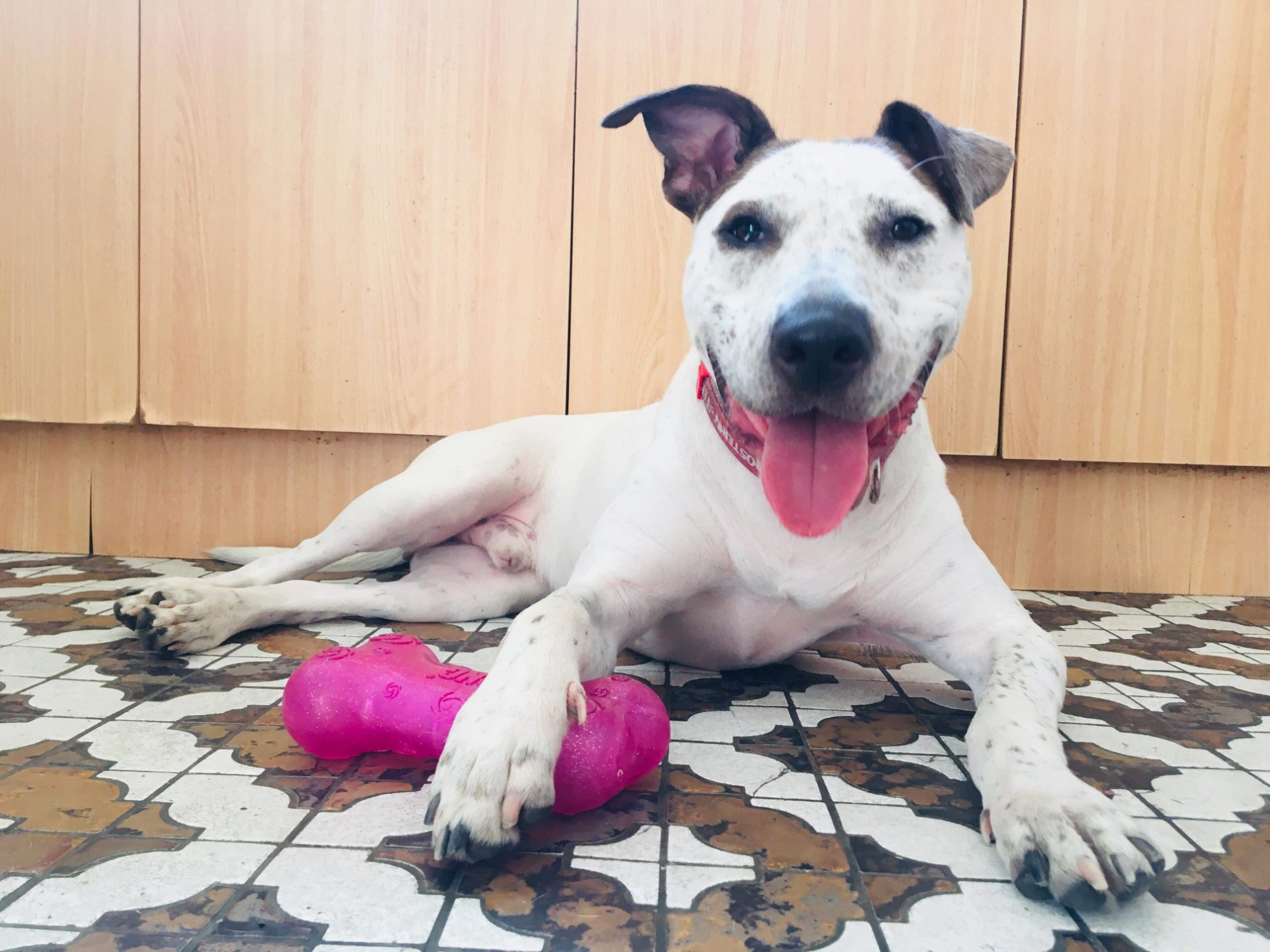 Spyke is currently in foster care, where he is learning to trust again. He’s enjoyed the company of his doggy foster brother, who he loves to play tug of war with, chase around the backyard like mad and cuddle up next to when it’s time to nap, and he does love his naps.