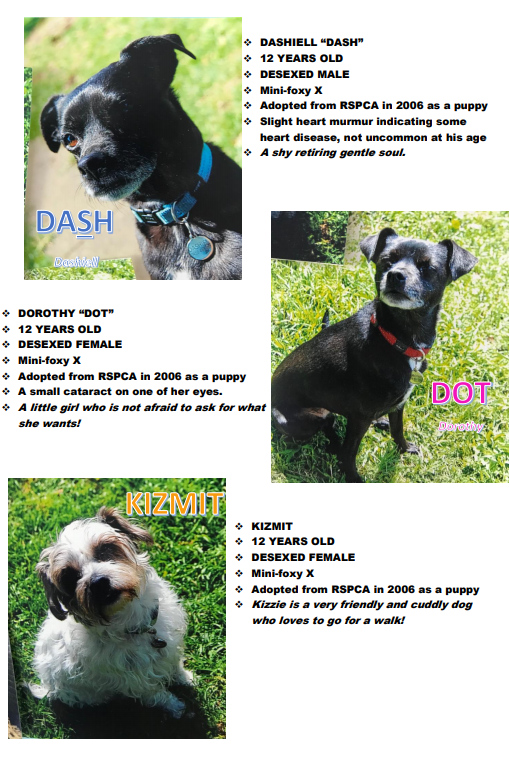 They’ll get access to resources to help Dashiel, Dorothy & Kizmet settle into their new home and exclusive offers from PetRescue partners.