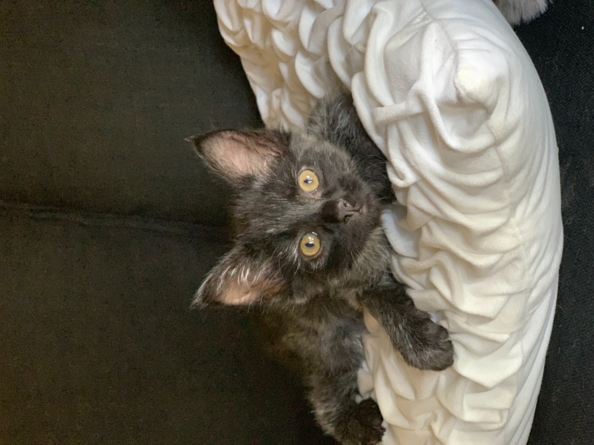 This stunning little girl came into care as a tiny Black fluff ball and over time she has turned into a stunning Black Smoke Beauty.
