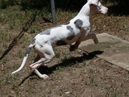 maxie is a very smart girl who is a very train-able. She relies on calm assertive body language as she is somewhat deaf - to what extent is not known exactly. She has grown up with another large dog and has enjoyed the company of other large dogs she has visited. Maxie recently had what you could call eye lift surgery as she has too much loose skin on her head, she still has some loose skin around her eyes and her eyes will need to be watched for infection. Maxie is still with her current owner and needs to find a new home due to her owners ongoing illness, her family are devistated so we're looking for a very special home for this lovely young dane who will be a big girl when mature. Maxie is currently a mostly outside dog who is looking for a dog savy owner to run her through basic training, she has had a session with dane rescue who were very impressed with her trainability. Maxie has not been tested with cats, small animals or live stock