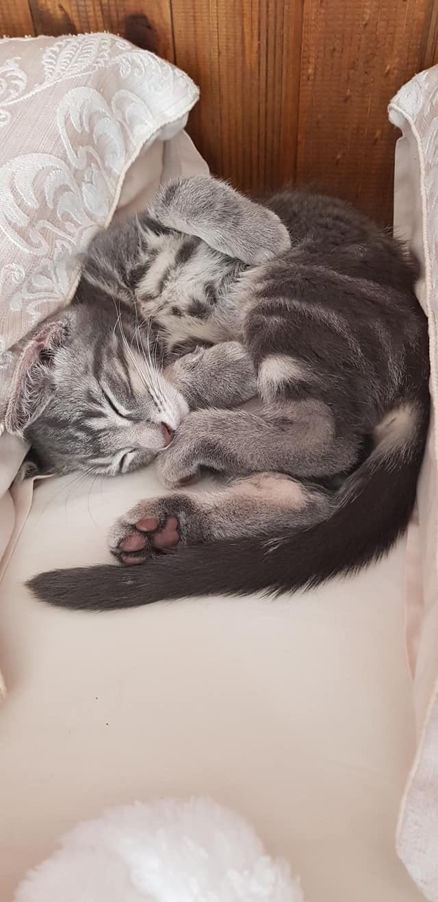I'm a very handsome grey tabby male and I sure know it too! I'm very independent, however I'm very snuggly at bed time. I love a rough and tumble with my foster carers dog and I'm good with my litter mates as well.