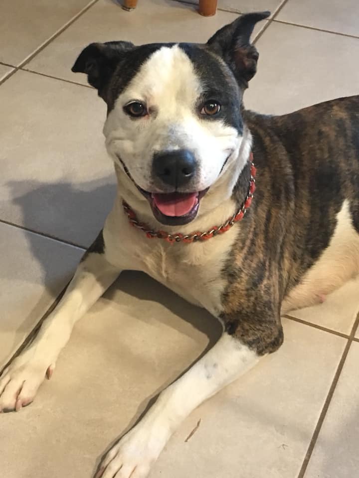 I will bark a little when you come to my door but as soon as you come in all I will want to do is play and show you how much I love you. My current human says I can be a bit naughty as I like to jump up at her when she gets home from work. She won’t talk to me until I stop this but once I stop she gives me lots of pats and cuddles. I’m still learning, but I’m getting the hang of it. I am good with other dogs and would love to have a play mate, after meeting them first of course (I can’t be best friends with just anyone). I’m not too keen on being left on my own, so a buddy to play with would be fantastic! I love my toys, especially rope toys so we can play tug. I also like going for walks, but I need a bit more lead training as I tend to pull a bit. It’s just so exciting I want to see everything before it disappears.