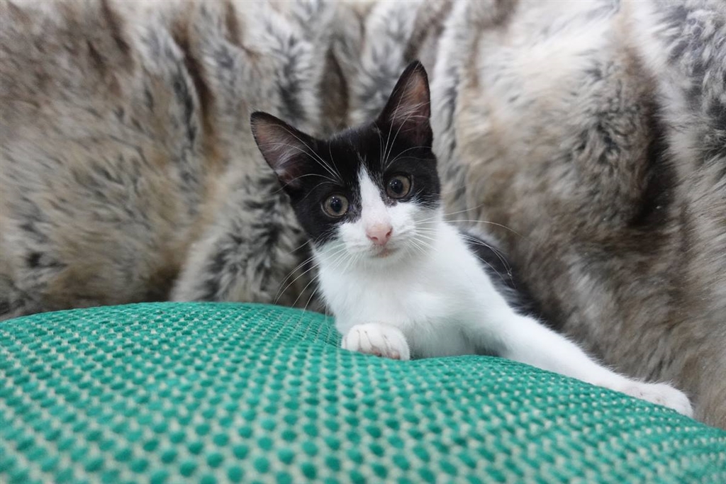 My carer says that's I'm a bundle of fun, a real dynamite. Like most kittens I love to play, especially with my brother Spence and then we both like to relax and cuddle with our humans.