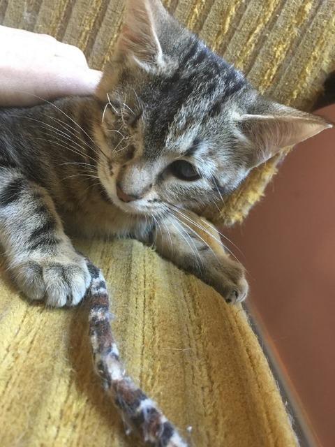 We saw another vet and had lots of ointments and drops for our eyes, as well as antibiotics. The medicine helped to make us better, but it took a lot of time. We had to have our eyes cleaned and treated every day but slowly they got better! To begin with, Iris couldn't see at all and she was probably going to need to have both her eyes removed. But guess what?! She's done so well that she now has partial vision from her left eye. Her right eye has now been removed as it had no vision at all and may have had problems if it was left there - but at least she's not totally blind! As you can see from our photos, she can still play with string toys! (Even if her aim isn't always great )