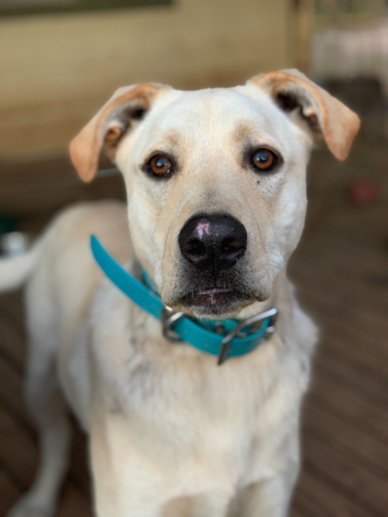 Wes is a sweet boy looking for a new furever home. He has come out of his shell a heap since coming into rescue. He loves to play with other dogs and is even learning fetch. Wes knows basic commands like sit, and is learning more currently. Wes can come across as scared or timid but once he is comfortable around you, you will see the big lovable goofball come out in him. He can be cautious of males more so but we are working on this while he is in care and he is getting better at meeting strangers now. He would benefit from having a sibling he can play with and learn from and humans that can give a firm but caring and guiding hand in training him. He would benefit from a no cat home also as he has a tendency to chase them, you would also have to supervise him around young children as he is a big boy and may knock them over. If you have the time for this sweet man fill in an application.