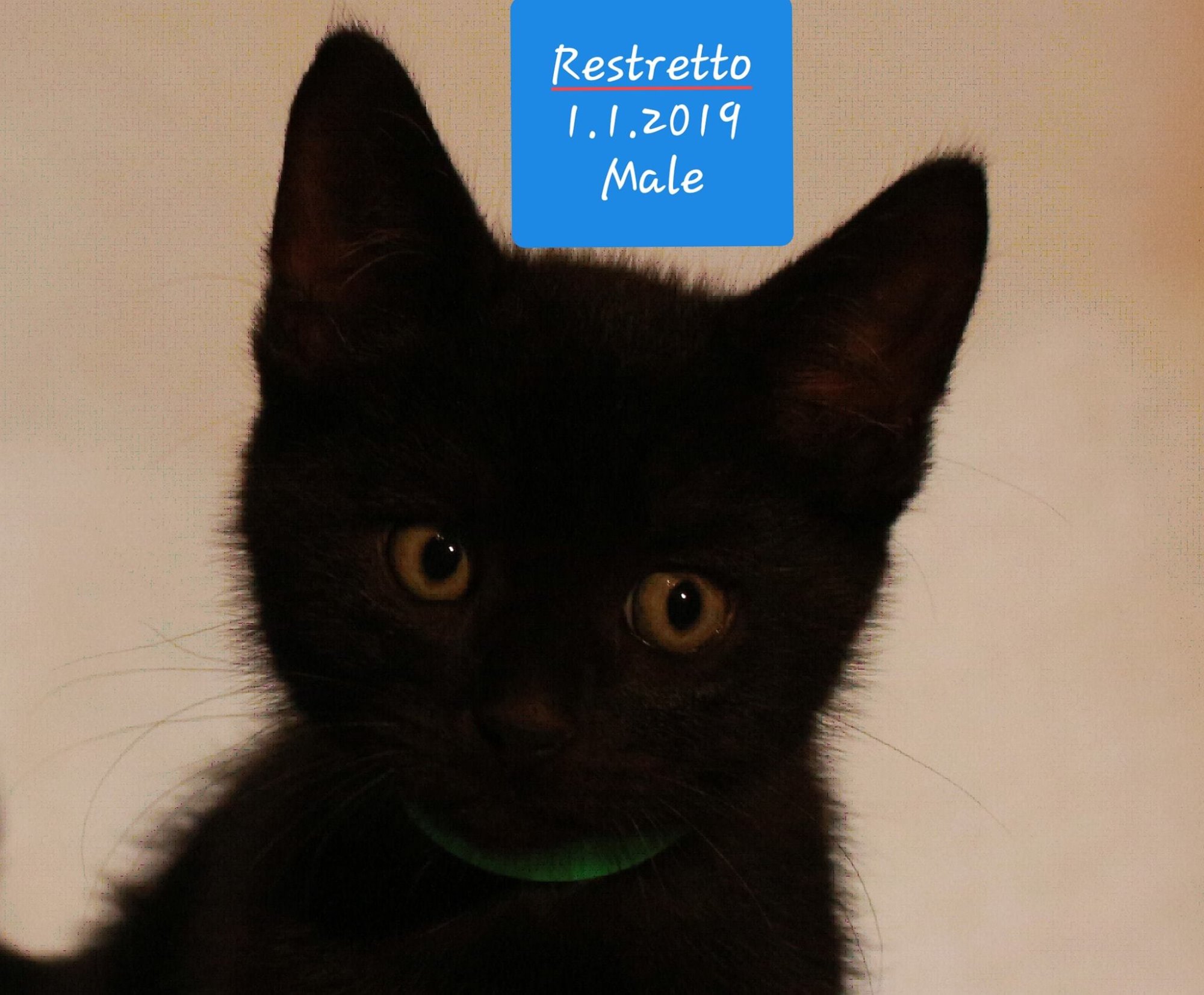 Restretto loves human attention and a good play. He would be a great match for any home situation.