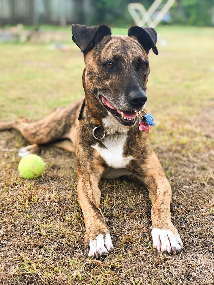 She has a lot of energy and enjoys walks twice a day and a play in the backyard. She loves to chase a tennis ball and is still learning to bring it back, but her favourite toy is the tug rope. She is seriously so, so sweet. She would suit someone with space where she can run and be busy but then come inside and have a cuddle at night.