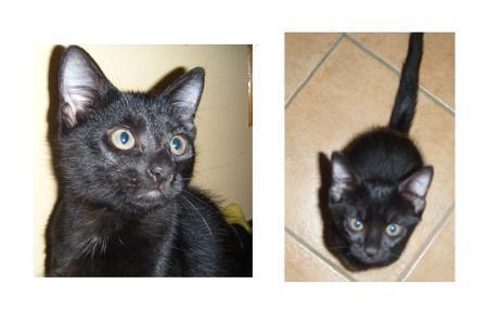 Jett is a gorgeous black kitten. He was rescued along with his mum and brothers and sister from a shopping centre. He enjoys the company of other cats and kittens and is very affectionate and playful. He is an indoor kitten. Jett is 12 weeks old (as of 12/4/2010). He is desexed, worm and flea-treated, vaccinated and microchipped. His adoption fee is $175. For further information please contact deborah bright telephone 3805 2013 or email allthebrightcats@hotmail. Com