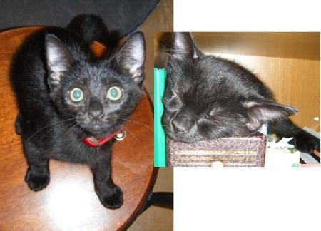 Ninja is a handsome black kitten. He was rescued along with his mum and brothers and sister from a shopping centre. He is very social with humans and cats alike and is very affectionate and playful. He is an indoor kitten. Ninja is 12 weeks old (as of 12/4/2010). He is desexed, worm and flea-treated, vaccinated and microchipped. His adoption fee is $175. For further information please contact deborah bright telephone 3805 2013 or email allthebrightcats@hotmail. Com