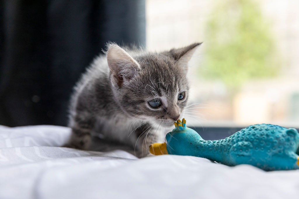 She is confident, all-the-time happy and playful girl who enjoys playing with her brothers and sisters and her toys. Loves cuddles and ear scratches, when you get the right spot, she will purr so loudly you can't help but laugh!