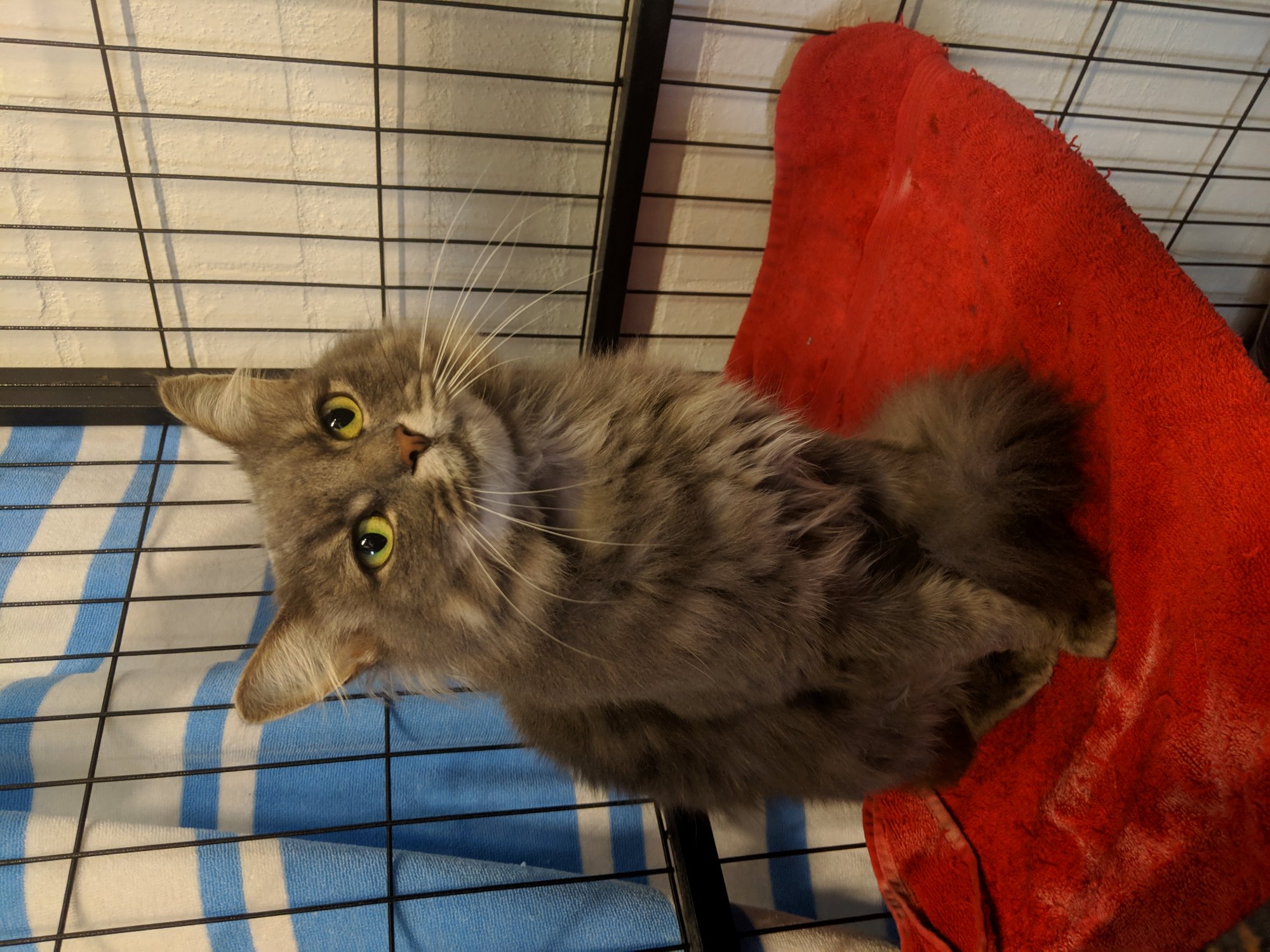 Wispy is a lovely 4 year old looking for a new home. She has a lovely soft coat that will need some brushing. She is very affectionate and loves a pat. Her previous owners sadly didn't want her anymore as they had too many cats