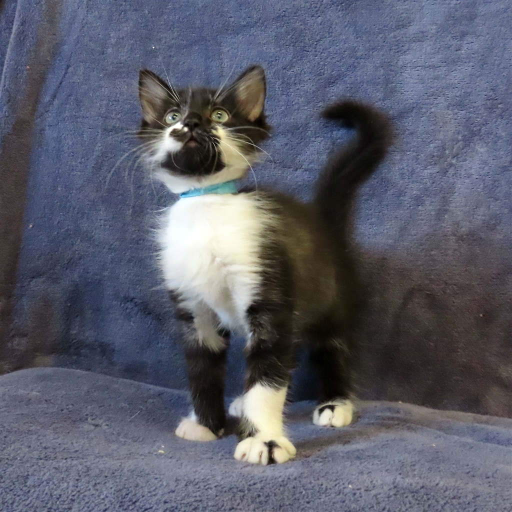 Hoover is a very bright and happy young man, with a bursting personality. He is very friendly, and enjoys lots of affection. Hoover like all young kittens enjoys sleeping, eating and playing with his siblings. Hoover has spent some time in foster care with his siblings. During their foster experience they proved to be very adaptable young ones who had the run of the place and the children. With his outgoing personality Hoover is sure to make any sized home a happy one.