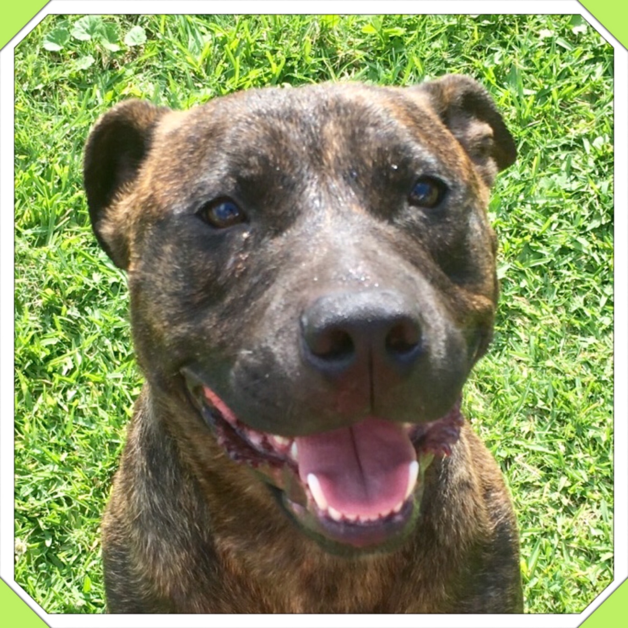 I’m an easy going kind of guy with a typical-staffy exuberance for life. I’m in foster care with 7 other medium sized dogs and I love hanging out with them. I’d really enjoy being adopted by a family with another well-mannered dog for me to bond and play with. I may also be OK as an only dog as long as I have lots of human company and am not left by myself all day long - I’m way too sociable to be isolated away from my humans. I have been known to get up to mischief (let's call it "redecoration") if I'm left to my own devices away from my beloved people all day long! I'd much rather be wherever you are - inside or outside.