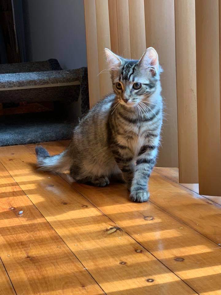 Our confident boy Pirate loves to play and loves to be with his foster humans. He loves his cuddles and would like his own lap to curl up on after a fun play session. He is very sociable and loves playing with his siblings and the resident cats.