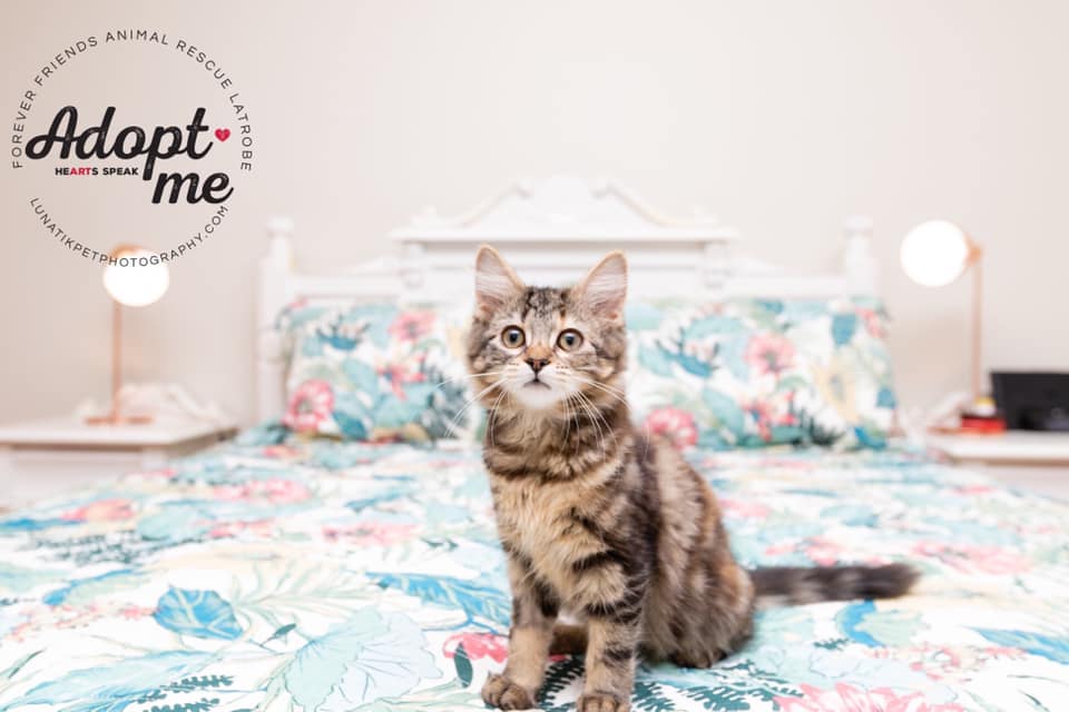 Pumpkin, along with her brother Parsnip came into care at approximately 7 weeks of age. Generally, Pumpkin is a very quiet kitten, however get her in the company of her similar aged foster siblings and she’s an absolute firecracker! Despite her outbursts of energy and playfulness, she is a well behaved kitten, she’s adventurous and loves to play with her siblings as well as the other cats and dogs in her foster home.