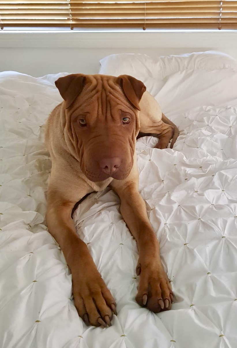 Combine the fun loving , social part of The Staffordshire Bull Terrier with the loyal, brave part of the Sharpei.