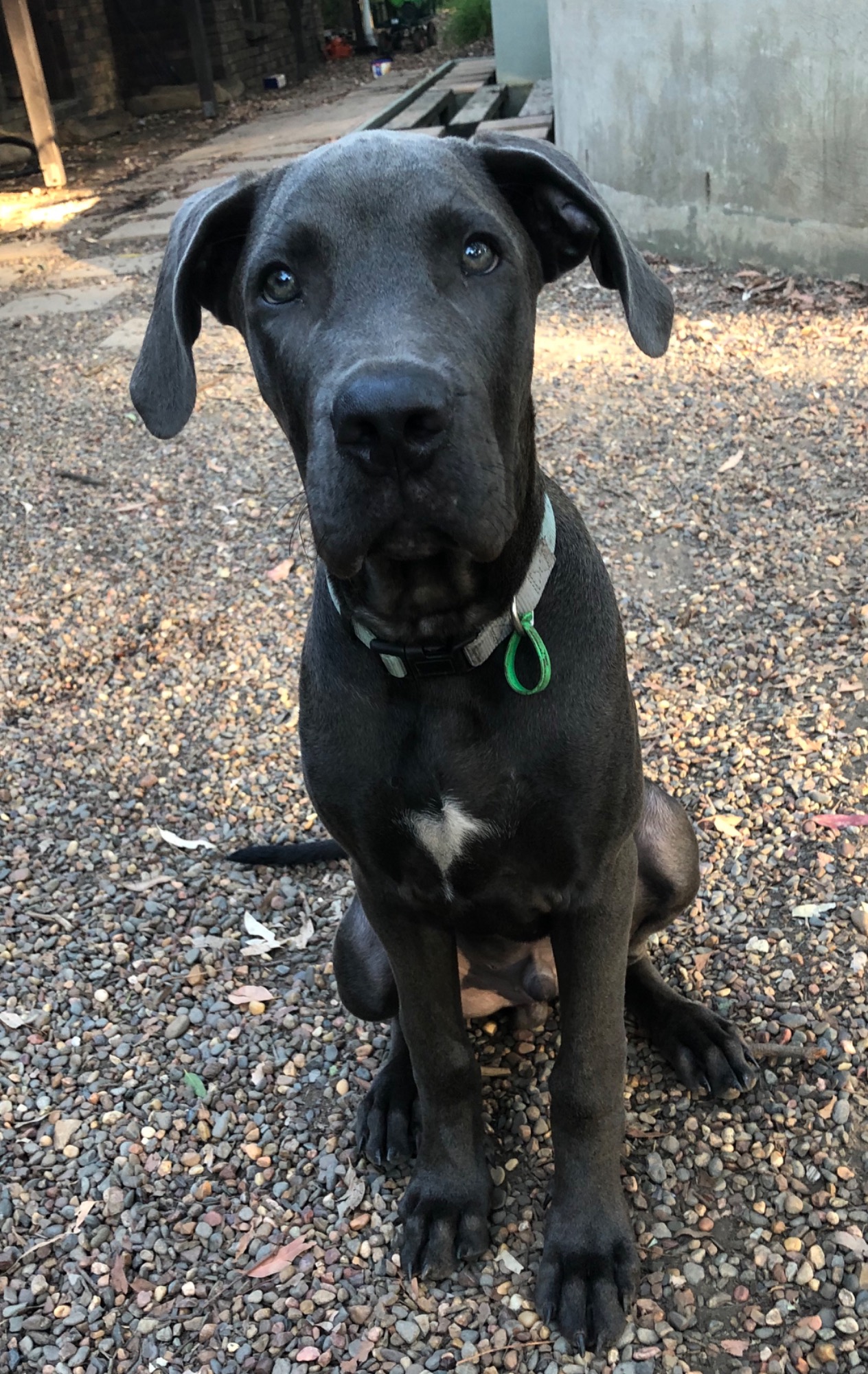 Colin is a 7mth blue Dane x. He is a beautiful cheeky boy but most of all a sook and lounge lizard. He loves the play with other dogs. Colin would love a family to love that have a spare lounge to sleep on. He would go to the park and meet other dogs. He would be a great companion for another dog.