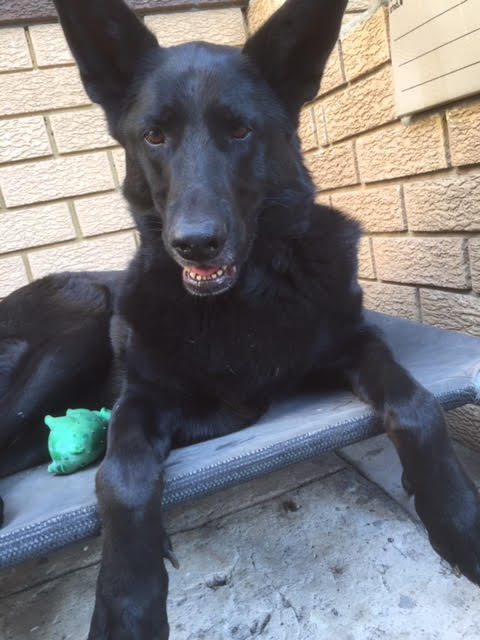 Texas is a beautiful seven year old Black German Shepherd who is now looking for a new home. She has lived with a male Mastiff until recently.