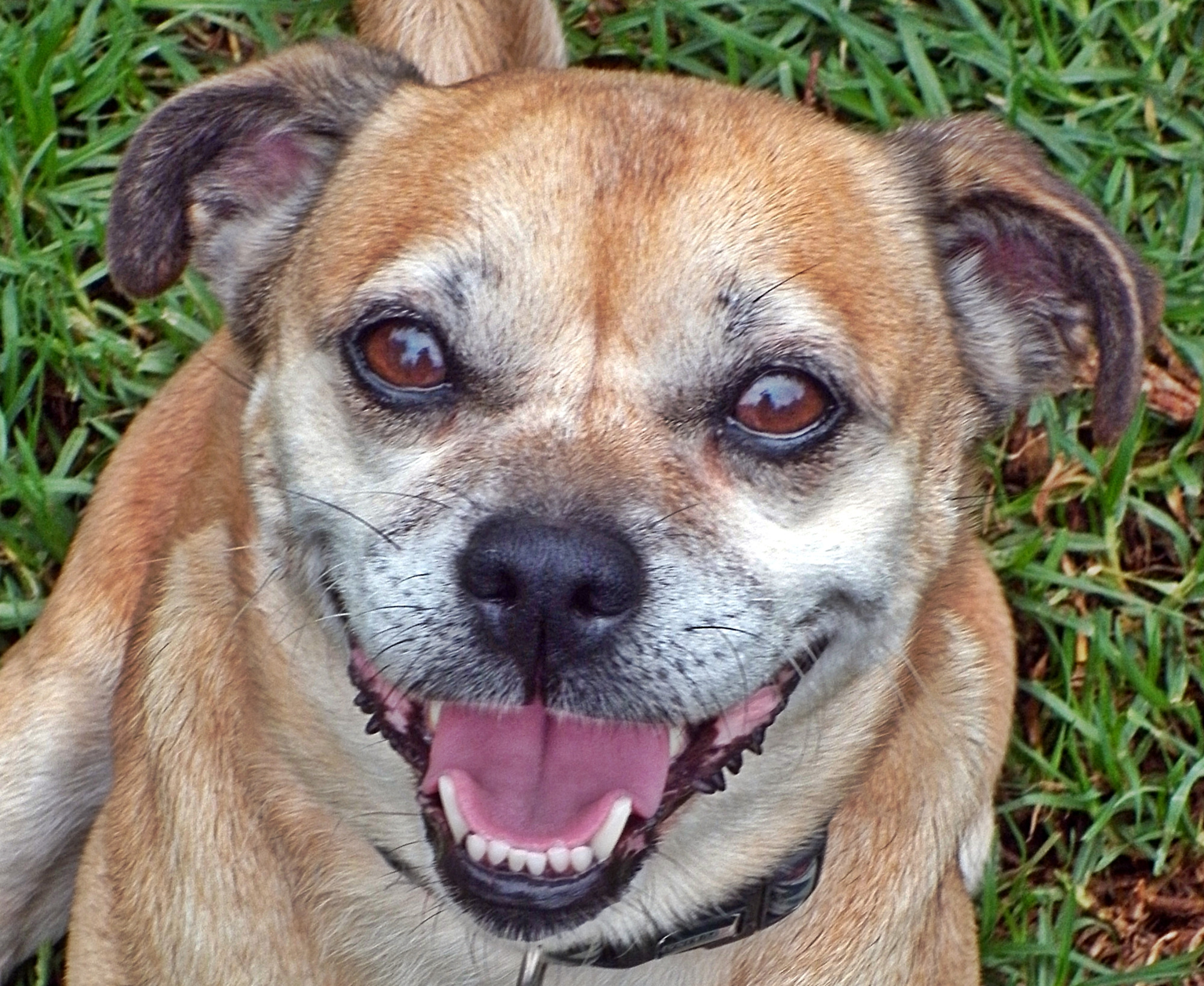 Stella is a sweet pug/JR mix aged around 8 yrs.
