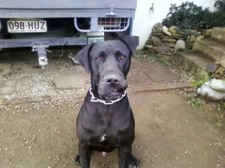 ***i'm trying out a new home*** queensland: benson is lovely 3 and a half year old black great dane. He gets on well with kids, cats and other dogs. He does seem to have a preference for woman over men. He loves going for drives and loves his tucker!