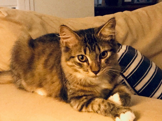 Scout is a gorgous kitten with the fluffiest tail. He LOVES to be in human company but doesn’t get in your way or do the annoying things. He just loves to sit and watch you as you carry on about your normal activities. He has a bit of a foot fetish and LOVES to snuggle at your feet, he is your personal foot warmer.