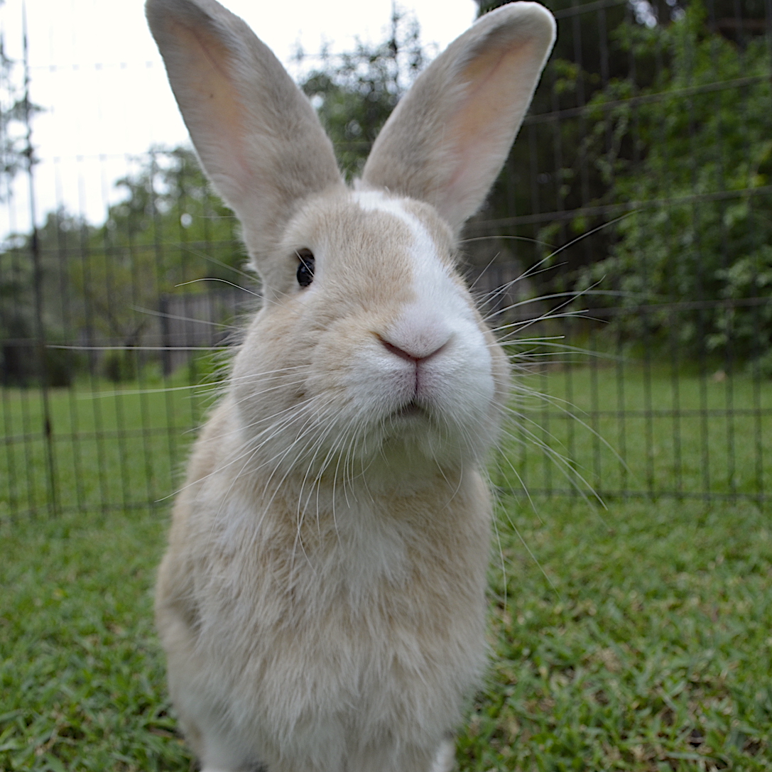 Ah Seymour, what a handsome devil this boy is. We are so in love with him and his cheeky ways! Seymour is perfectly litter trained, although he does have his own thoughts on where the litter tray should be placed. I doubt this boy has seen an enclosure before, and quite frankly, it is beneath him. Give him walls, and he'll look for a way out of them! Given that fact, this Houdini will need a very safe home, so he doesn't end up on the streets again. With such striking good looks, he is confident, always doing something, and is a bunny who will not be content without lots of playtime and attention. Don't adopt him if you're looking for a bunny. If, on the other hand, you're looking for a free range (with a safe night time pen), cheeky, cat/dog hybrid that will wake you up at night and make you laugh... well, Seymour here might be your guy. He'd really excel learning tricks too, he just loves to be learning and doing things.