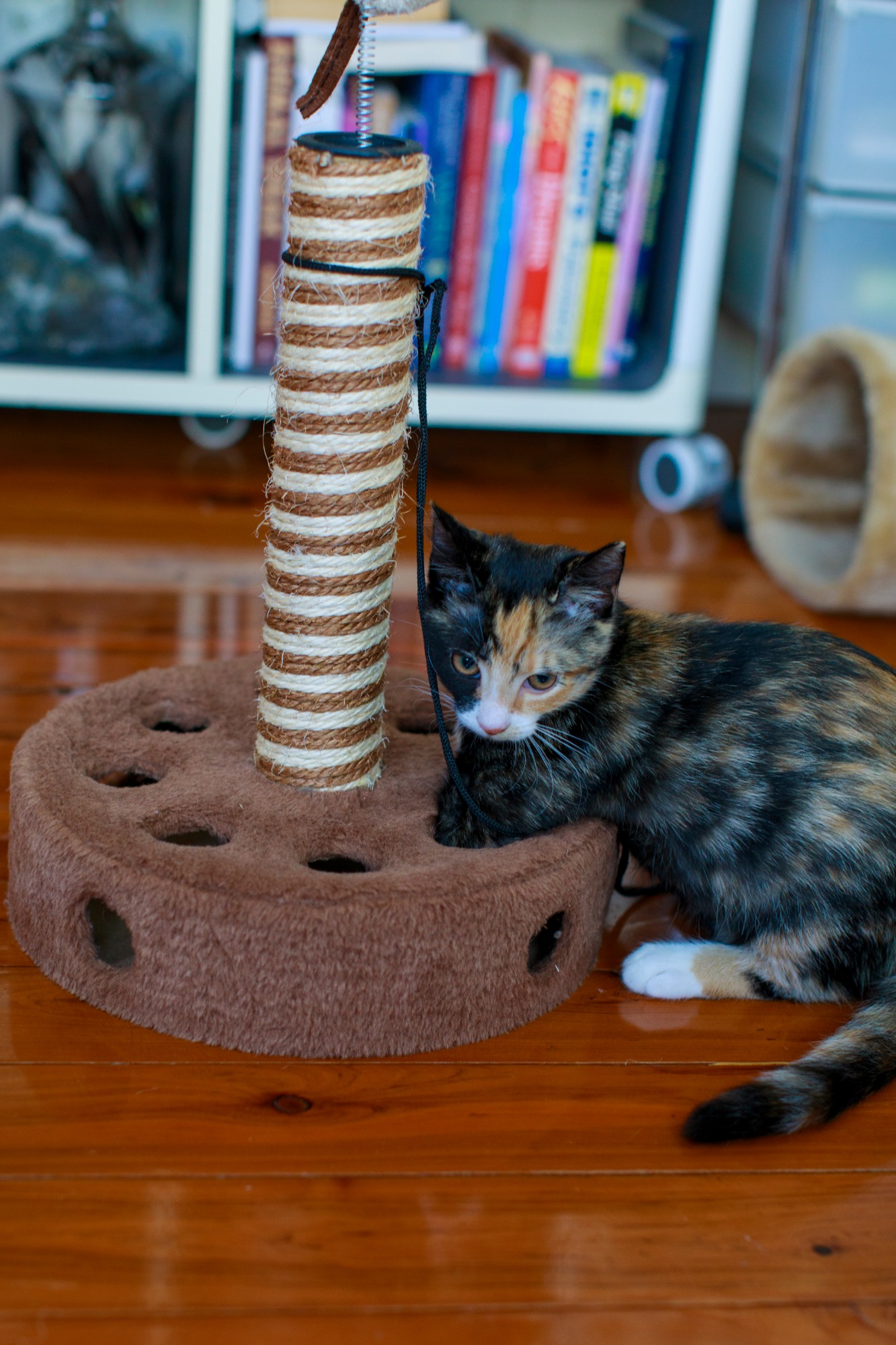 Grace has bright kitten eyes and a personality to match that will melt your heart. She may be small but she has a purr that shows her appreciation for you scratching under her chin and giving her tummy rubs. She gives you ankle rubs and meows when it is time for food and enjoys kitten cuisine. She loves playing kitten games with the toys, balls, tunnel and the cat tower. She enjoys snuggling and purring to sleep while basking in the sun and watching the world go by through the window.