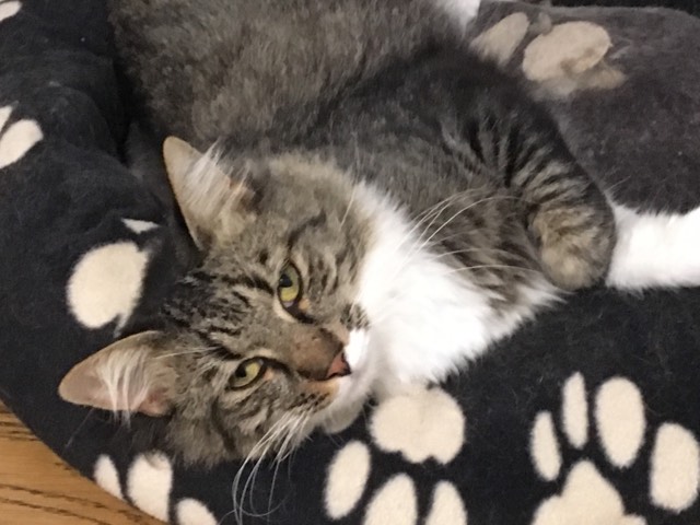 He's definitely a love sponge and adores everyone, especially his people. He would do well with another feline companion to laze around with.