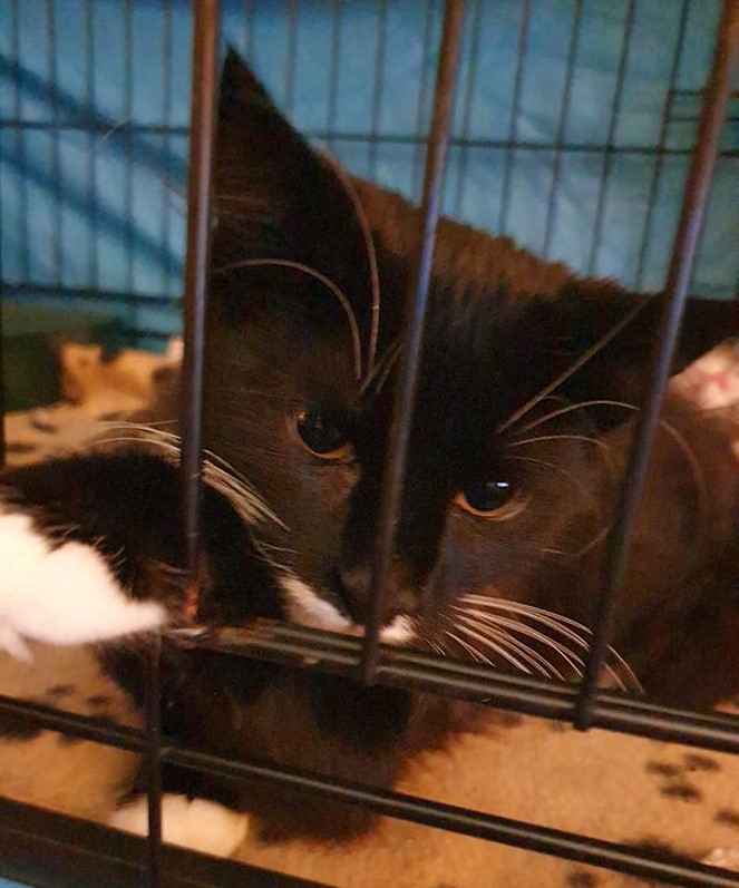 Felicity is a handsome black and white "tuxie" little girl with the cutest white fluffy bib and yes a moustache! Flis likes to be indoors and finding her own hidey holes to get in (a paper bag is a favourite), playing and receiving plenty of pats. She also likes to have a stroll in the garden where she, er, helps with the gardening, but actually just likes to roll around while her foster carer gardens. Flis isn't adverse to a bit of telly watching either, and the motorbikes racing on Moto GP is a favourite...and she also likes sitting near her foster carer when she's on the computer and watching the screen, particularly the cursor...Being long coated Flis has a regular brush too, which she quite likes.