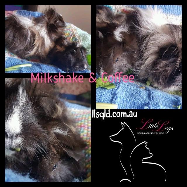 Milkshake gave birth to 2 little pigs, 1 boy who has found a loving home and 1 little girl ""Coffee"" who will be staying with her mum. Coffee is a little mini me of milkshake and so adorable. They do have a gorgeous, easy to maintain silk coats.