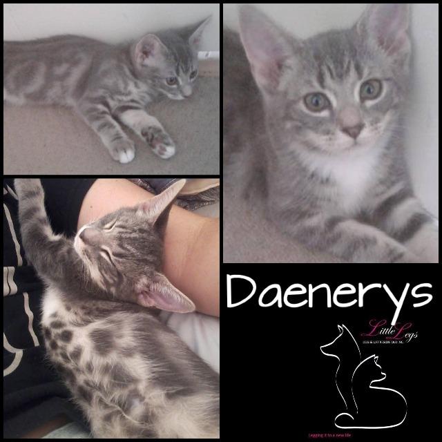 Beautiful Daenerys, there is no place she'd rather be than sitting on your lap (except maybe the Iron Throne). Daenerys is a very social kitten and absolutely loves people. She also enjoys playing with her siblings and chasing pesky house flies. Is there room in your life for this little cutie?