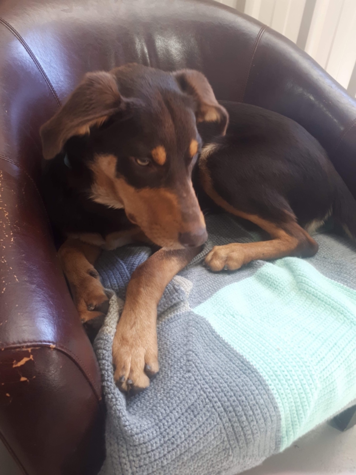 Koda is a handsome fella looking for a new home, this 8-9 month old boy is full of energy and loves his ball. Koda loves playing with kids and other dogs, he stalks cats so a home without would be best. He is good inside and loves a cuddle from his foster humans, he will require further training being young still. He knows the basics but can get excited at times and breaks his sit. Koda will need someone who can put training into him and exercise him as he is an active boy. He is currently attending doggy day care and is loving it 🐶 If you have the time for Koda and can give him what he needs both training wise and physical wise please put an application in.