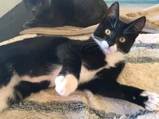 Katie's sassy and affectionate nature will make her easily fit into her forever home. She will meet you at the door after a long hard day and happily sit on your lap for hugs. She is black and white and very cute.