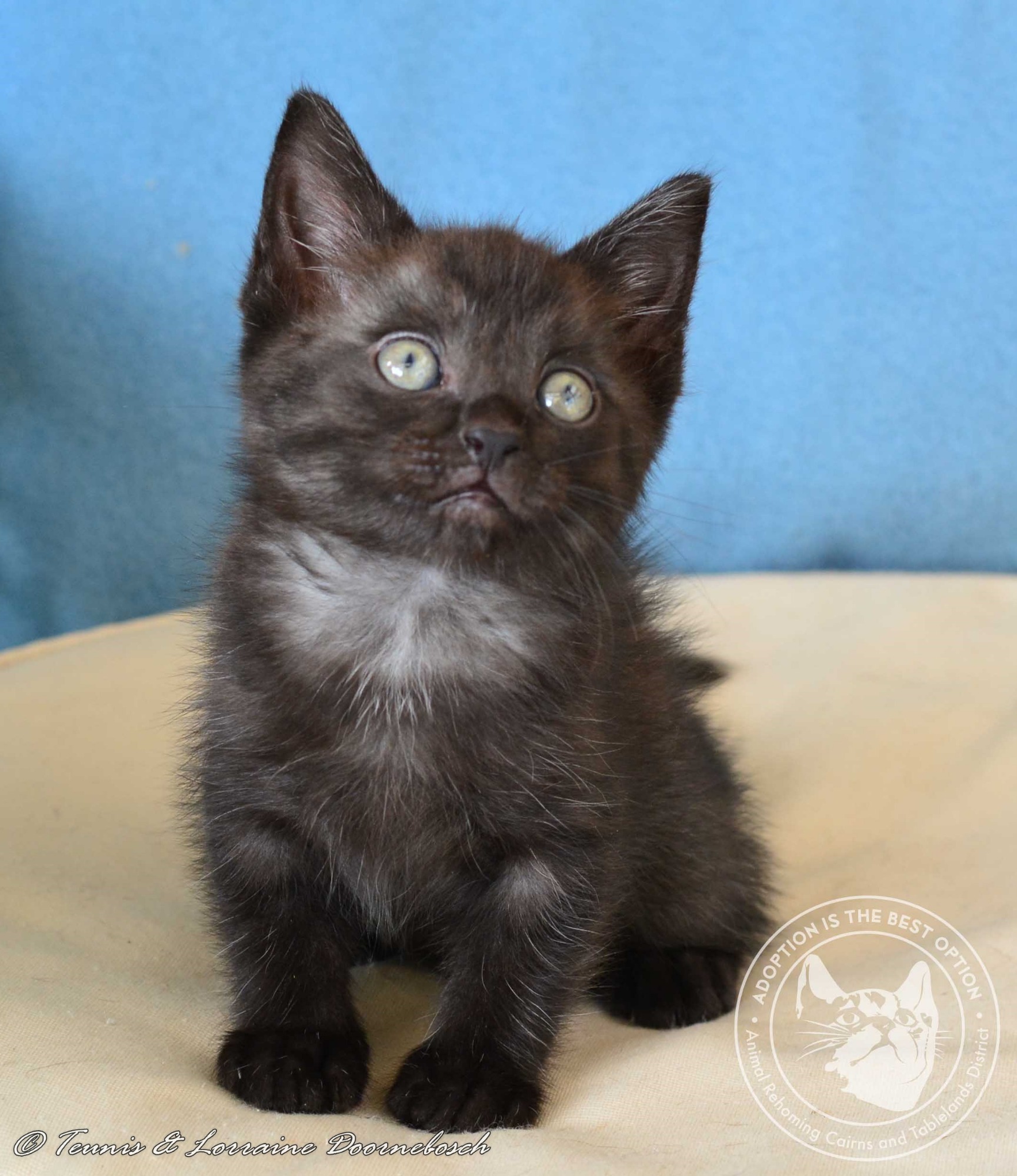 Fabio was born 21.02.19. His beautiful mum Fleur raised him outdoors on a farm and she did a magnificent job under difficult circumstances. Fabio's a little shy at first, but soon responds to gentle handling and care. He has a soft grey undercoat at present, but that may change to full black when he grows up. For now he is just a cute, soft, fluffy little boy who loves to play and he is learning that human hands and fingers aren't scary monsters. Fabio is in foster care in Millaa Millaa and will be available for adoption when all his vetwork is done which will include desexing, microchip, vaccination, flea and worm treatment. If you're interested in adoption, please click on this link to complete our application form https://form.jotform.co/91463029063858