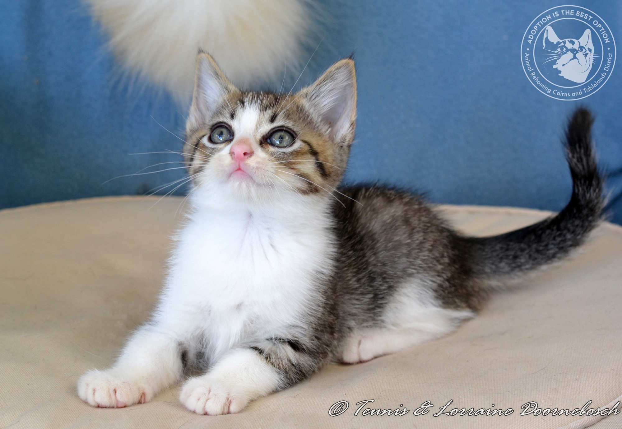 Fergal was born 21.02.19. His beautiful mum Fleur raised him outdoors on a farm and she did a magnificent job under difficult circumstances. Fergal is the biggest of the boys in the litter but is he a mummy's boy. Such a sook, although he's a little hand shy with humans, but it won't take long for him to learn to trust and enjoy playing with people as much as he loves to rough and tumble with his siblings. He's a stunning boy to look at too and so photogenic. Almos ttoo pretty to be a boy. Fergal is in foster care in Millaa Millaa and will be available for adoption when all his vetwork is done which will include desexing, microchip, vaccination, flea and worm treatment. If you're interested in adopting this baby boy, email arcatd@hotmail.com