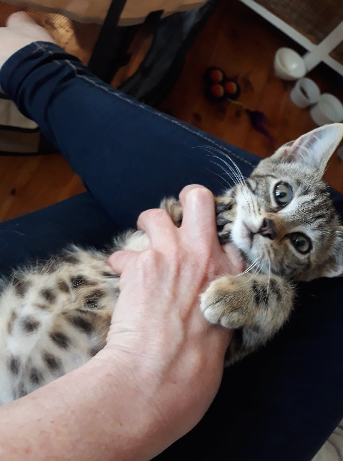 Violet is a sweet delightful kitten with glorious adorable cheetah markings which you can see in Pic 3.