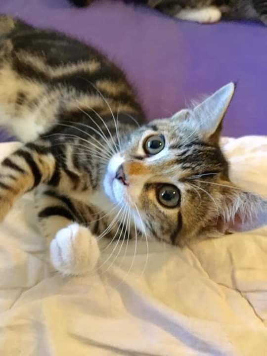 Meet gorgeous little Pinky. This tabby and white little girl will melt your heart. She's super cheeky and although a bit shy, will warm to you forever once she gets to know you. She was found in a cardboard box with her brother Parky (also advertised on Pet Rescue ) and if possible they would love to be together in their new home.