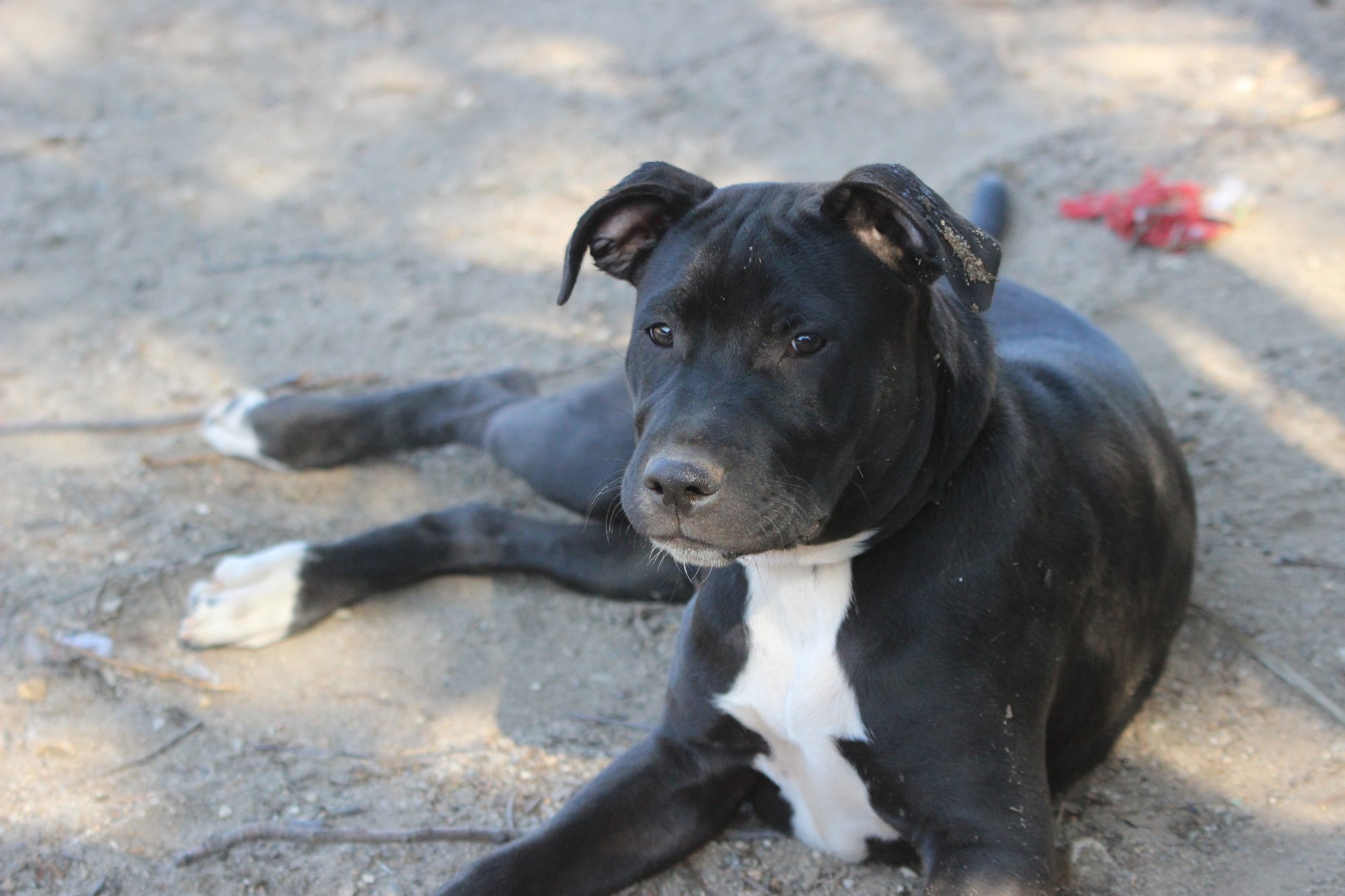 Having staffy in her it is not recommended that she go to a home where there is no one home during the day for long hours as they love the company of people or other dogs.