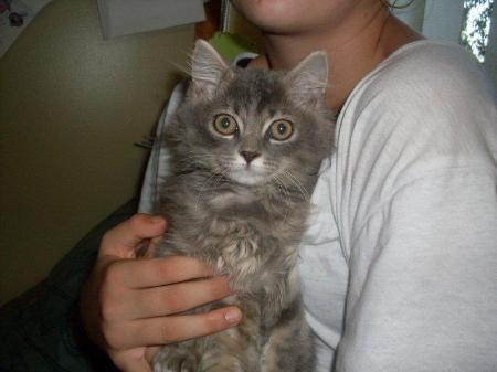 Gizmo is a gorgeous, fluffy little girl who is wonderfully affectionate. She is used to playing with a dog, and loves smooching and sitting on laps. Her coat is medium length suggesting a possible persian heritage. A very special girl looking for a special home