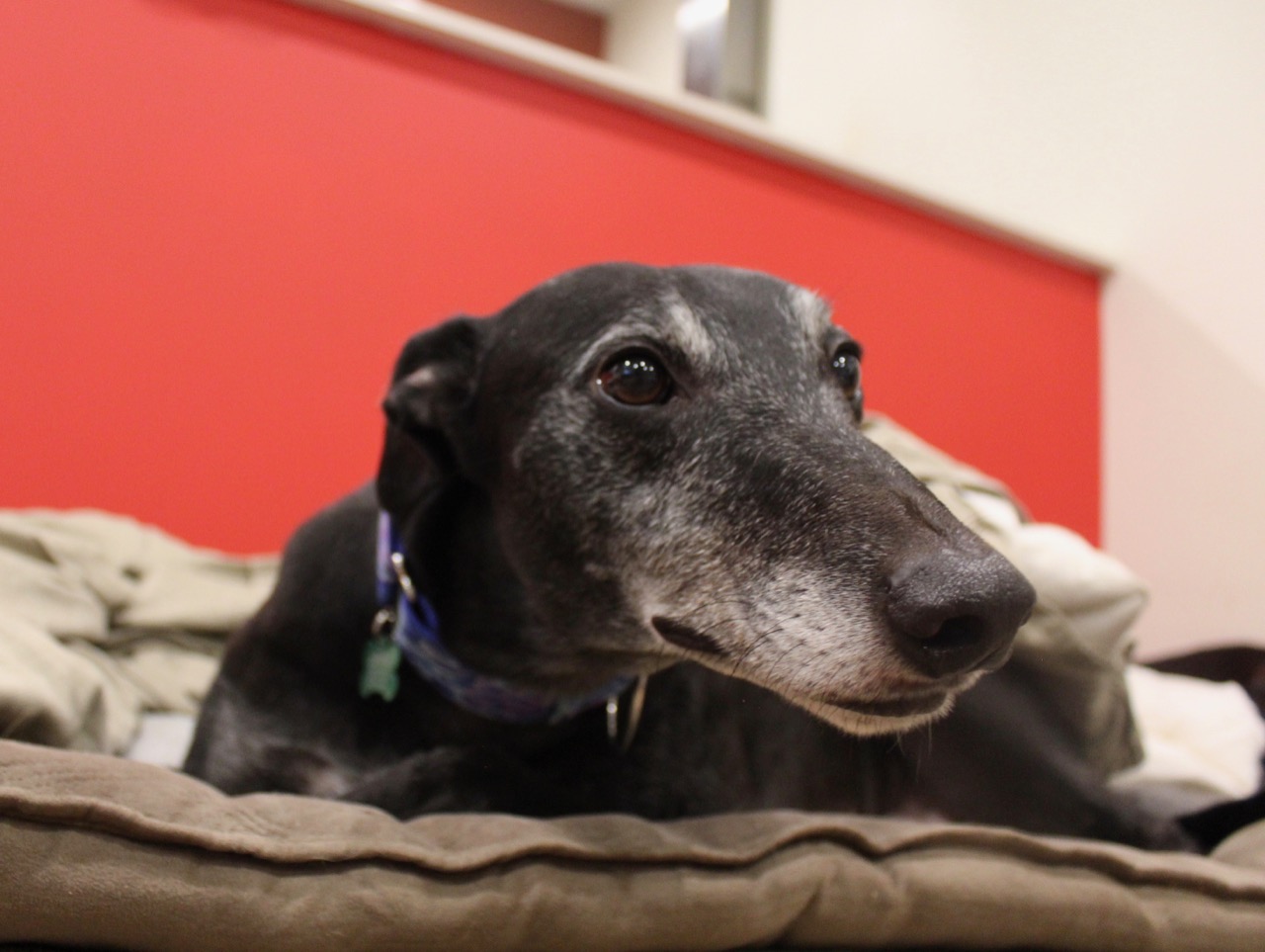Buster is testament to the wonders of greyhound rescue. Earmarked for euthanasia, the paperwork was complete but we pleaded to take him. He’s been put through the ringer in recent times but has since thrived as a foster hound.