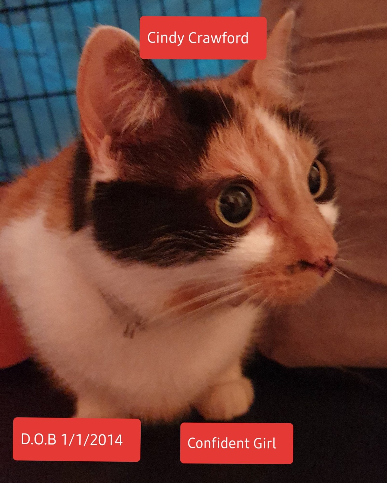 Introducing Cindy Crawford the confident Domestic Short Hair Calico and White Girl.